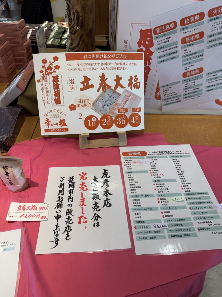 ร้านขนมญี่ปุ่นท้องถิ่นที่ได้รับความรักมานานจะขายมาเมะไดฟุกุ (ขนมโมจิไส้ถั่วแดง) เพื่อฉลองวันริชชุน